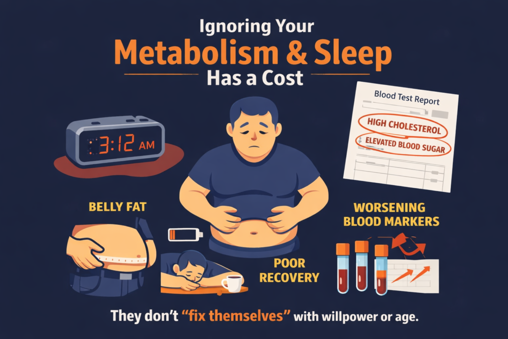 Ignoring Your Metabolism & Sleep Has a Cost Belly fat, low energy, poor recovery, and worsening blood markers don’t “fix themselves” with willpower or age.