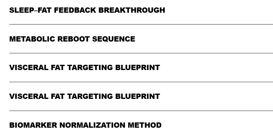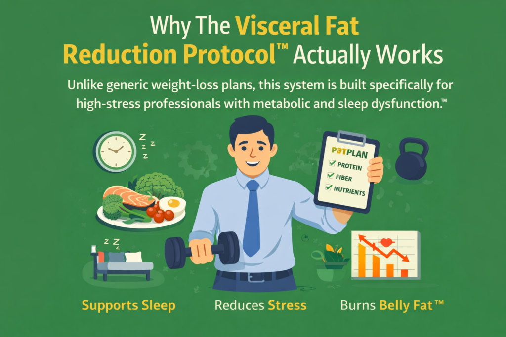 Why The Visceral Fat Reduction Protocol™ Actually Works Unlike generic weight-loss plans, this system is built specifically for high-stress professionals with metabolic and sleep dysfunction.